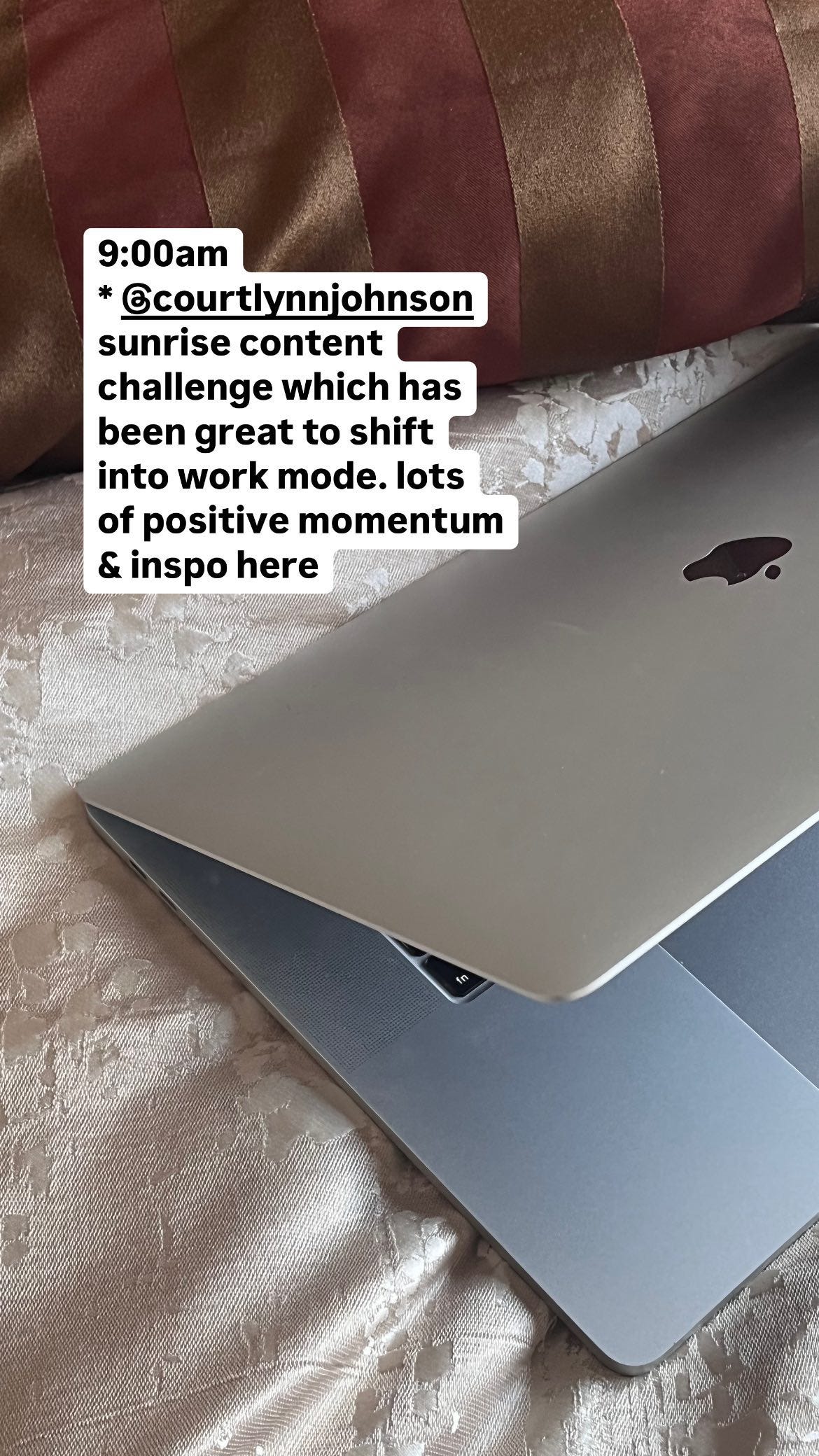 Start work! I have a whole ass work routine (+ post-work & evening routine) that I will share soon, but as of late I’ve been starting the day with Courtney’s Sunrise Content Challenge which is a productivity game changer for content creators like moi.