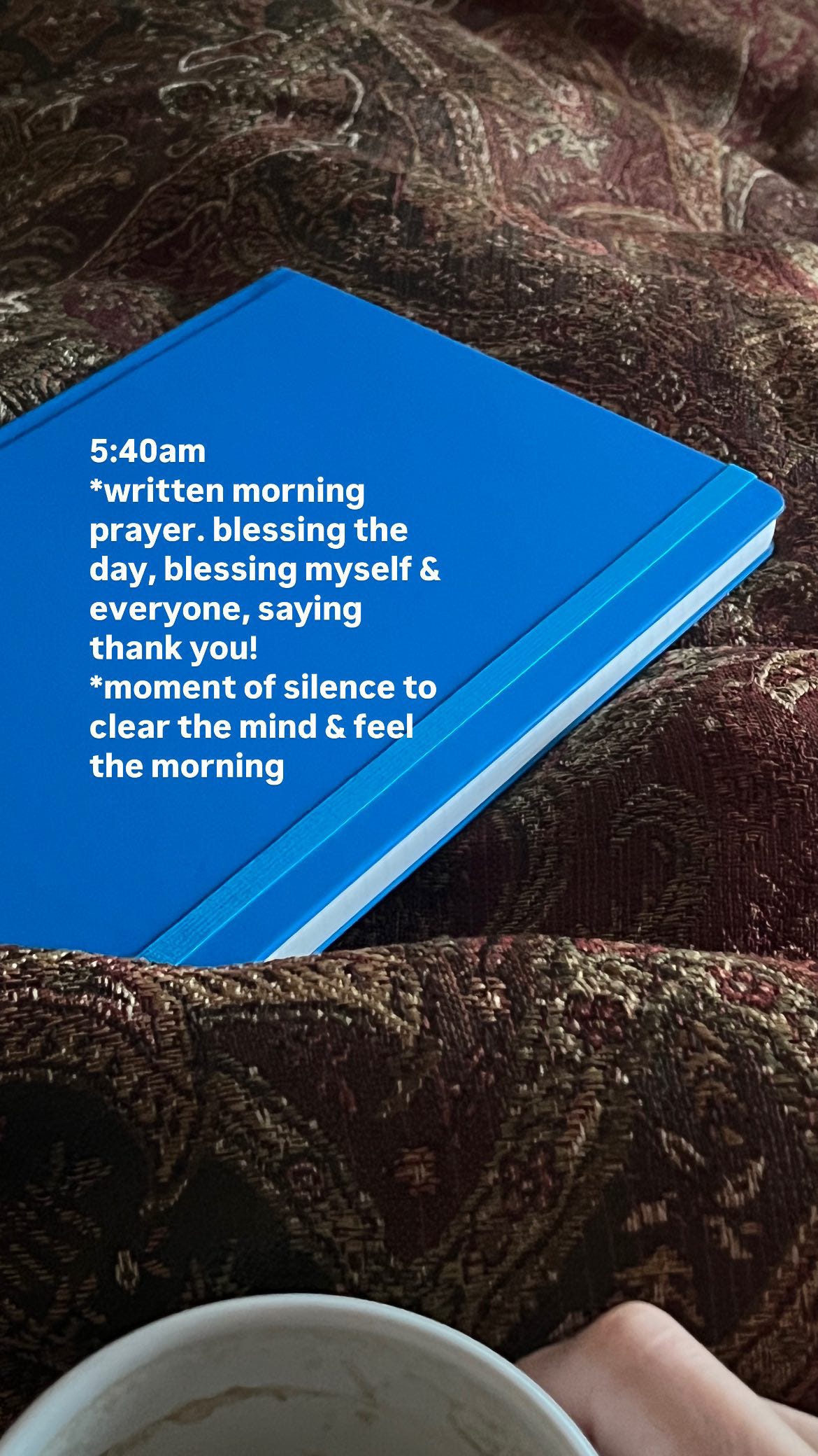 Written morning prayer. I bless the day, I bless myself, my loved ones, the world & all of its creatures. I say thank you to God!!